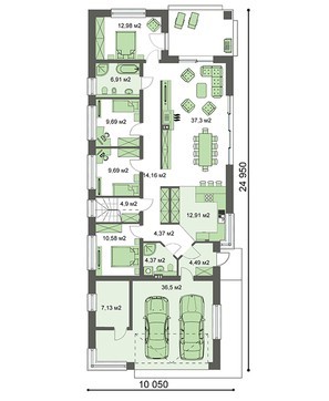 Проект содержит три раздела – Архитектурный, Конструктивный и Инженерный: водоснабжение, отопление, вентиляция, канализация, электроснабжение (приобретается за дополнительную плату) + Пояснительная записка.