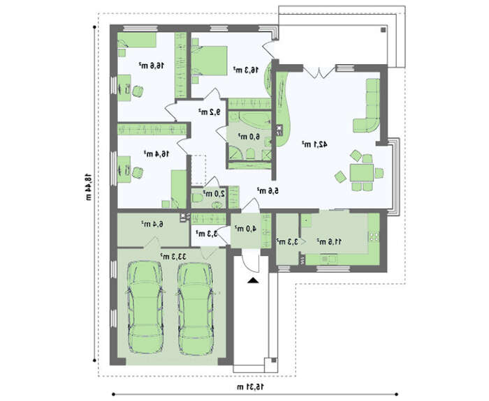 Проект одноэтажного дома площадью 175 кв.м. с гаражом для двух авто
