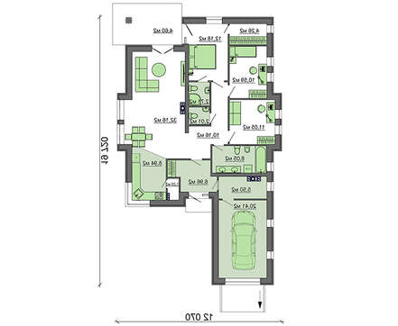 Великолепный одноэтажный коттедж, выполненный в немецком стиле, станет не только украшением загородного участка, но и комфортабельным жильем для среднестатистической семьи. В основе европейской архитектуры лежат принципы рационализма и практичности. Это воплощено как в экстерьере, так и в планировке дома. Коттедж представлен прямоугольной коробкой с пристроенным помещением гаража. Небольшой цоколь, крыльцо гостиной и входной портал декорированы искусственным камнем. Украшением дома является просторная открытая терраса с колонной и деревянной конструкцией для летнего солнцезащитного навеса. Окна прямоугольные, двери панорамные, крыша четырехскатная из металлочерепицы.