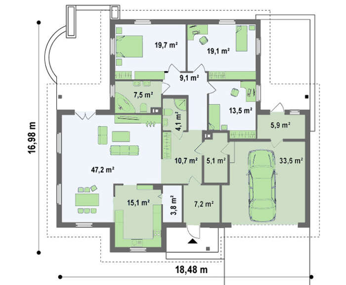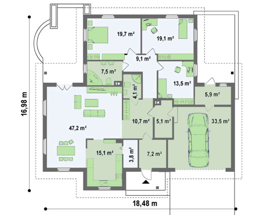 • 4M100 Просторный одноэтажный коттедж с гаражом для двух машин