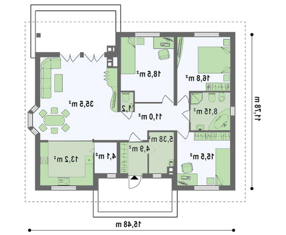Проект одноэтажного дома с кирпичным фасадом 4M011b