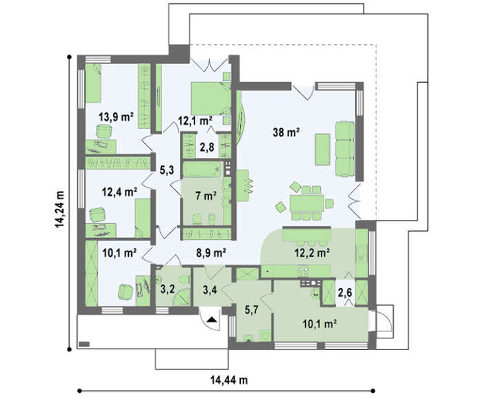 • 4M592G Одноэтажный коттедж с плоской крышей
