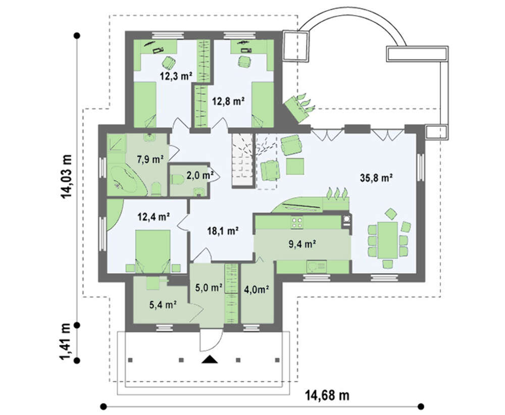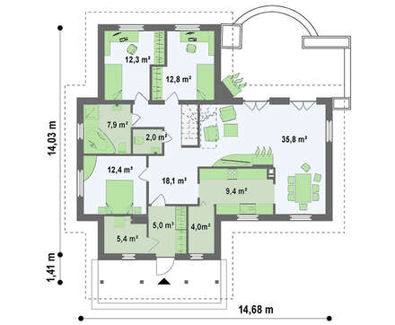 • 4M454 Проект одноэтажного дома с помещением для мансарды