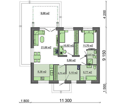 • 4M378 Проект одноэтажного дома в классическом стиле