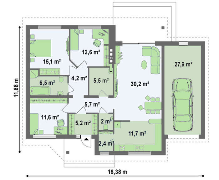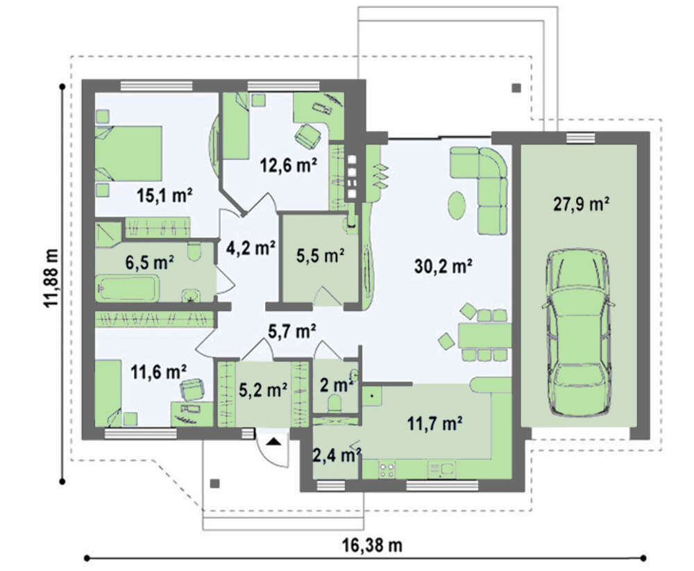 • 4M414G Проект одноэтажного классического дома с гаражом