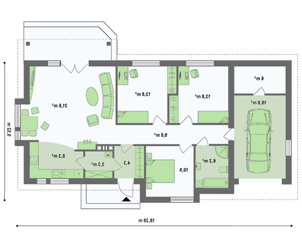 Проект одноэтажного коттеджа общей площадью 121 кв.м. 4M7057