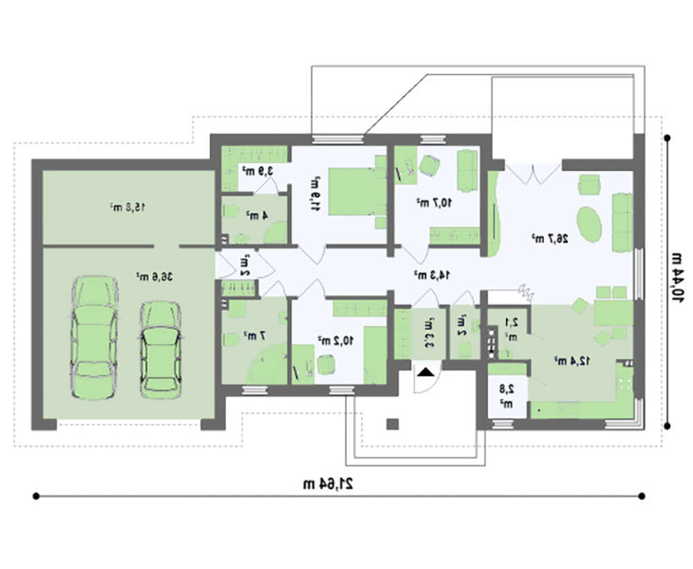 Проект одноэтажного коттеджа площадью 165 кв.м. с гаражом для двух авто