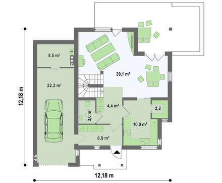 Проект содержит три раздела – АрхитектурныйКонструктивный и Инженерный: водоснабжение, отопление, вентиляция, канализация, электроснабжение (приобретается за дополнительную плату) + Пояснительная записка.