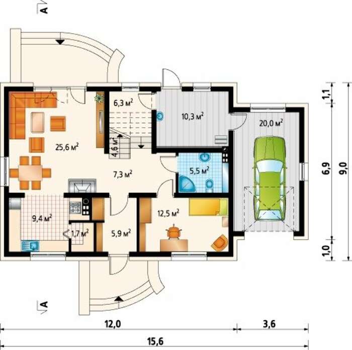 Проект поместья с мансардой для узкого участка с габаритами 9 на 15