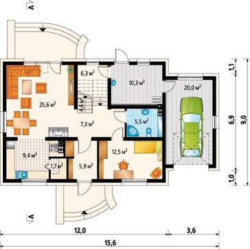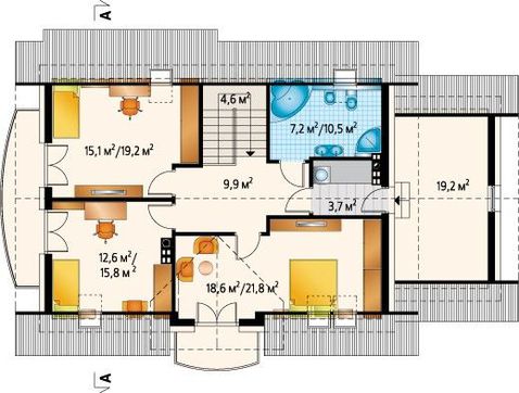 Проект поместья с мансардой для узкого участка с габаритами 9 на 15 4M3775a