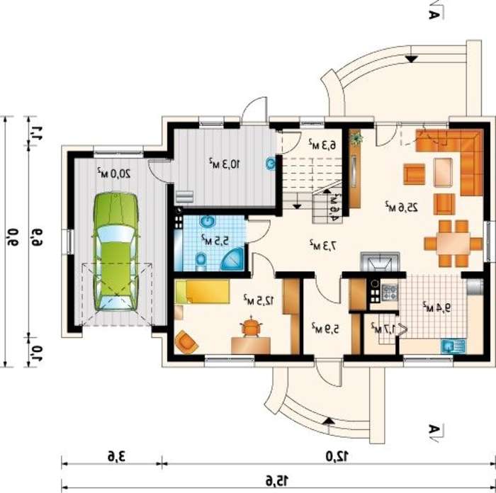 Проект поместья с мансардой для узкого участка с габаритами 9 на 15 4M3775a