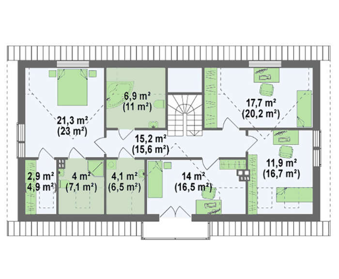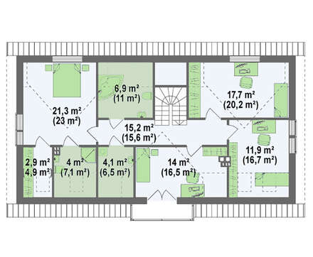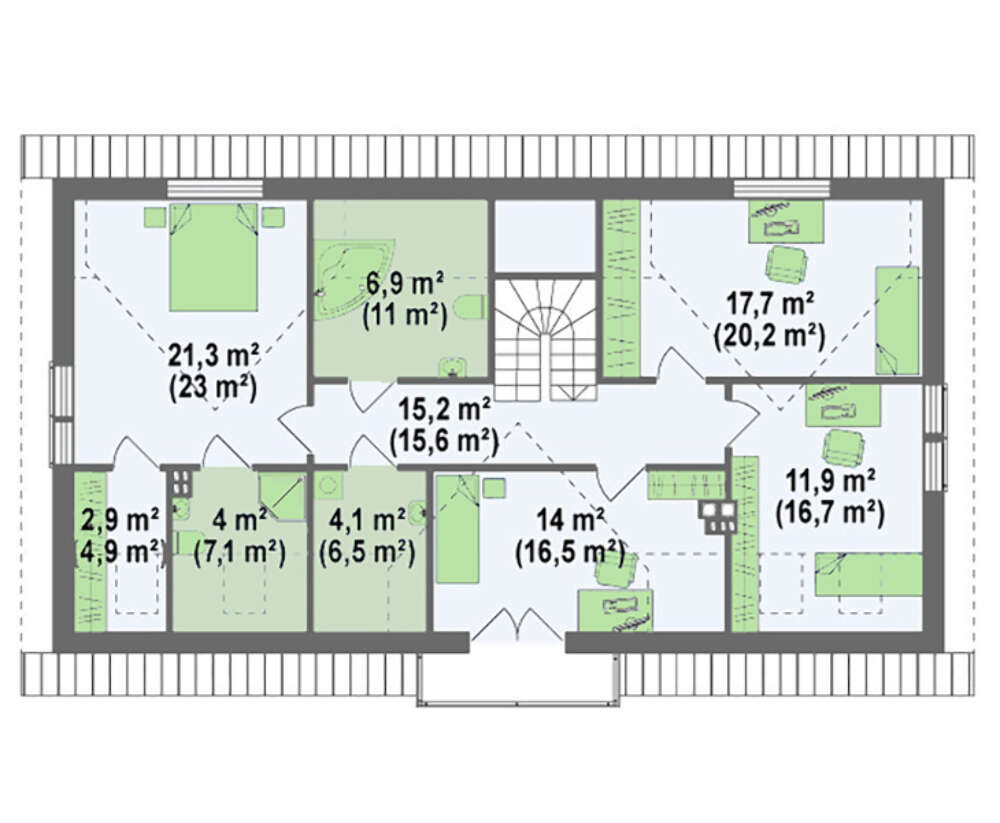 Проект практичного коттеджа с мансардой и удобным балконом 4M264