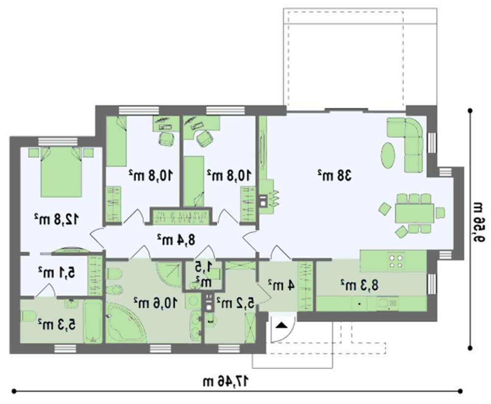 Ошеломляющий одноэтажный дом с плоской крышей в стиле хай-тек 4M606. Как нельзя лучше он отвечает ультрасовременному желанию жить стильно.  Дом выполнен с безупречным вкусом из новейших, дорогостоящих материалов.
