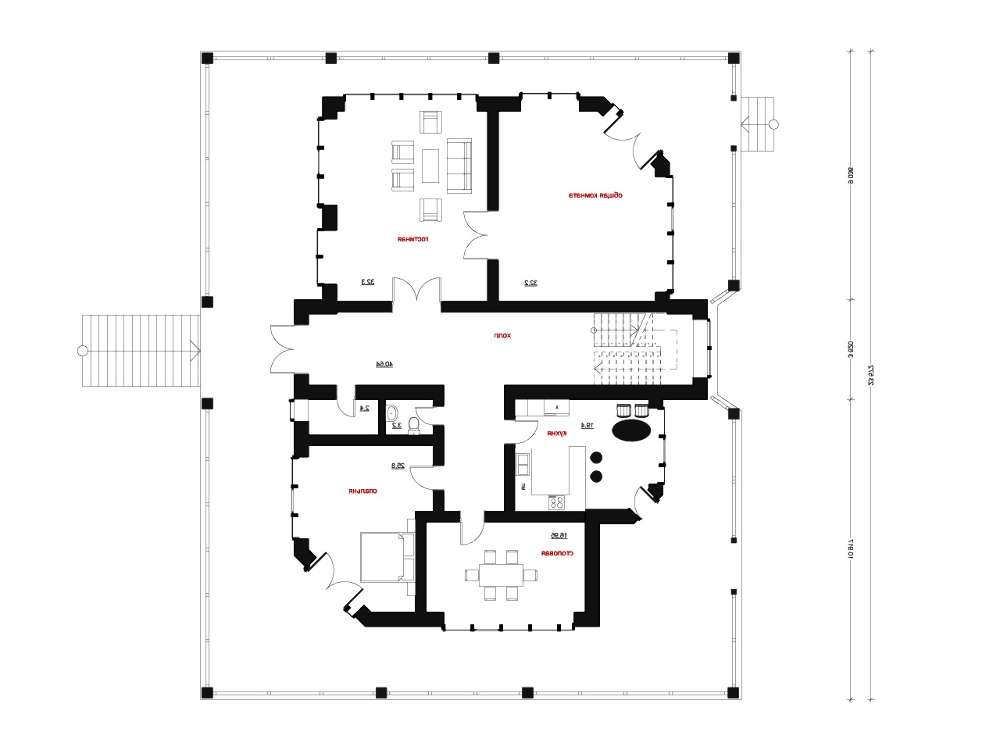 Проект содержит три раздела – Архитектурный, Конструктивный и Инженерный: водоснабжение, отопление, вентиляция, канализация, электроснабжение (приобретается за дополнительную плату) + Пояснительная записка.