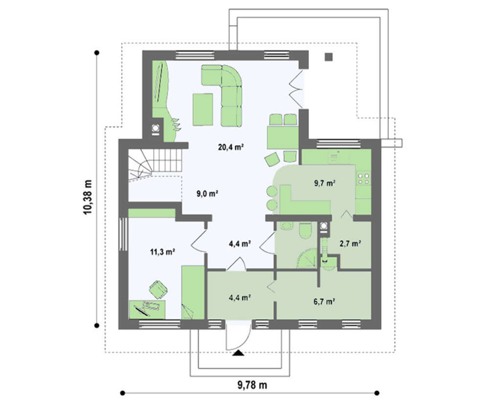 Проект содержит три раздела – АрхитектурныйКонструктивный и Инженерный: водоснабжение, отопление, вентиляция, канализация, электроснабжение (приобретается за дополнительную плату) + Пояснительная записка.