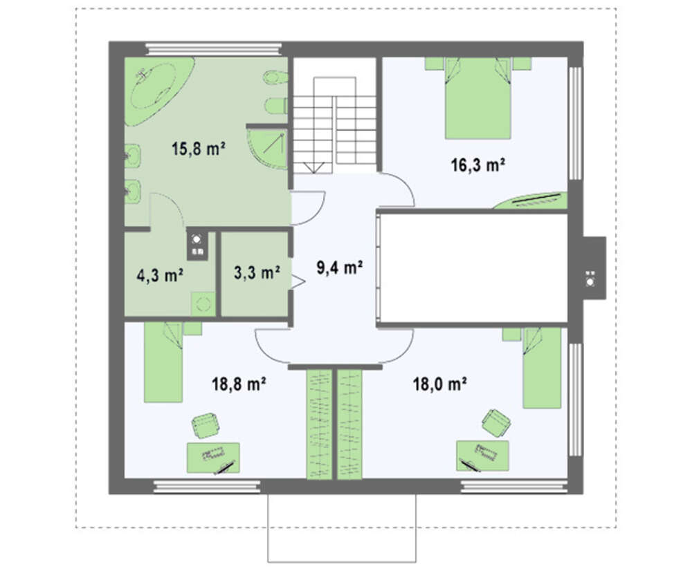Проект простого двухэтажного дома площадью 187 кв.м.