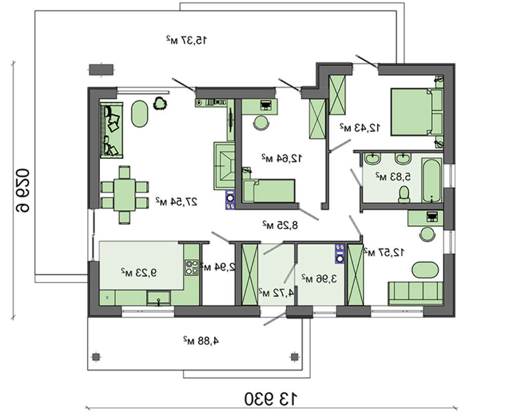 Проект простого одноэтажного коттеджа площадью 120 кв.м 4M146