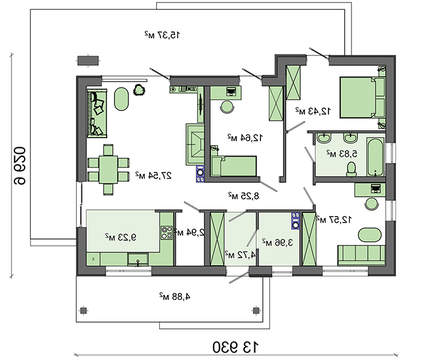 • 4M146 Проект простого одноэтажного коттеджа площадью 120 кв.м