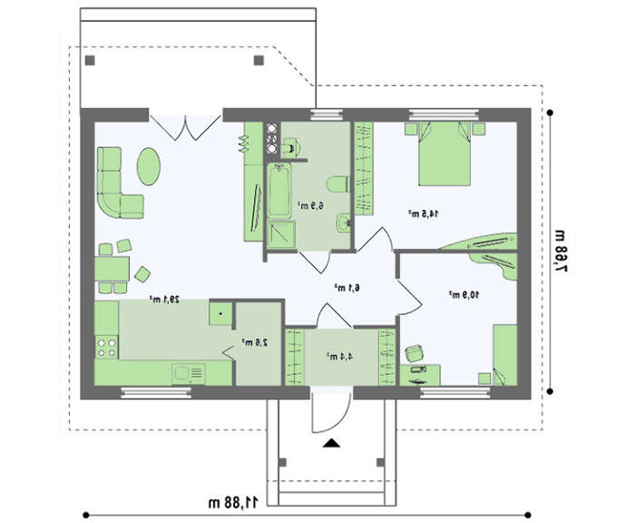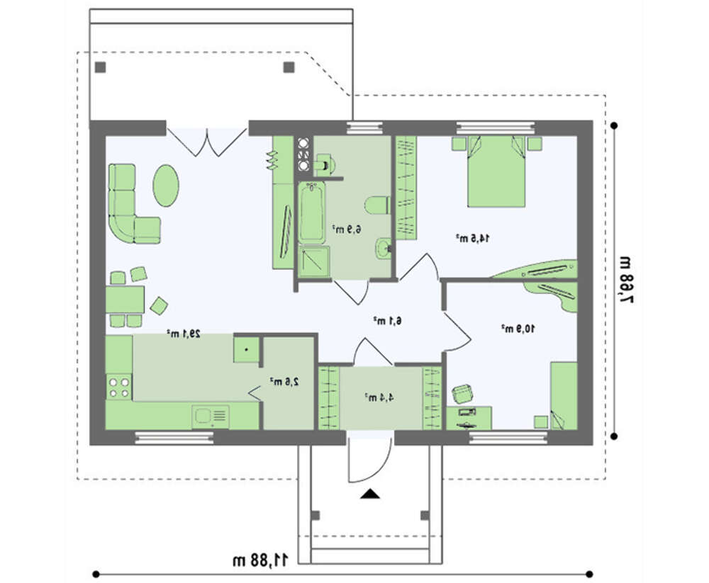 Проект простого уютного одноэтажного дома площадью 75 кв.м. 4M482