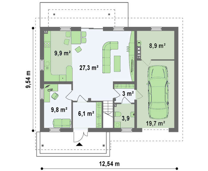 Отправьте пожалуйста, полную информацию по данному проекту (размеры помещений и детали по крыше, обустройство, выход и тд).