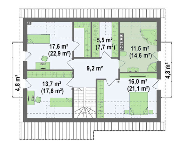 Проект семейного дома с мансардой площадью 190 м² 4M047