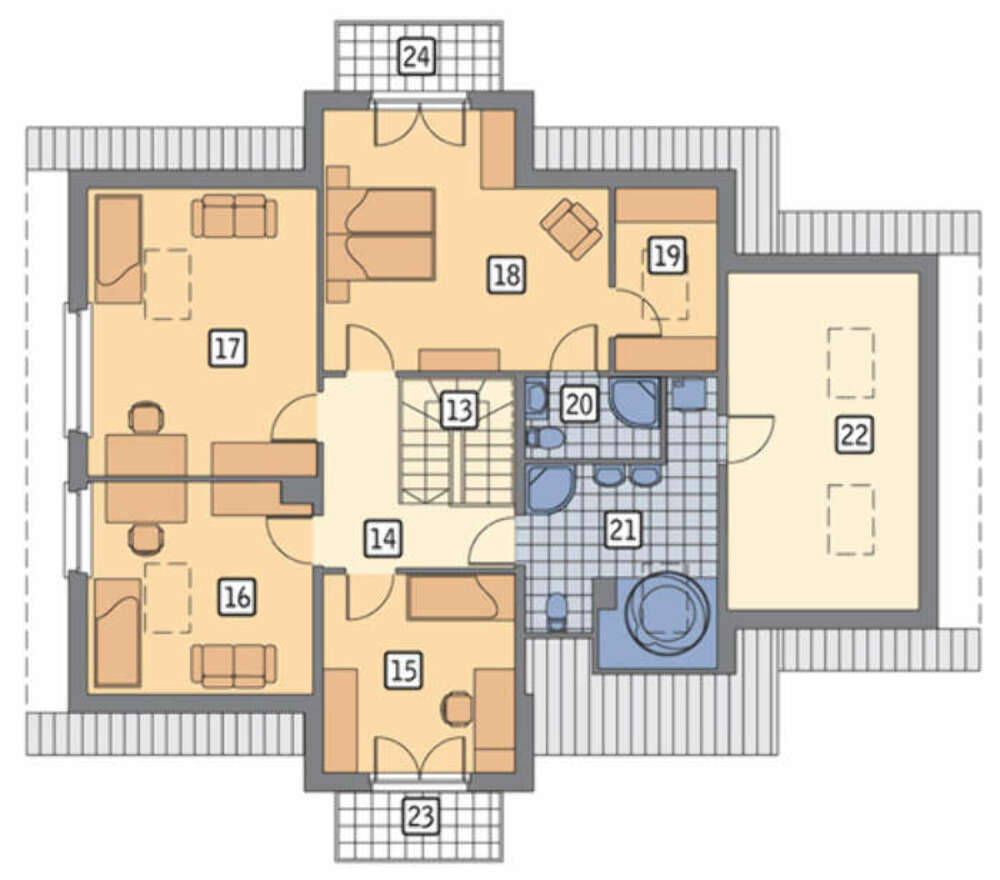 Проект содержит три раздела – Архитектурный, Конструктивный и Инженерный: водоснабжение, отопление, вентиляция, канализация, электроснабжение (приобретается за дополнительную плату) + Пояснительная записка.