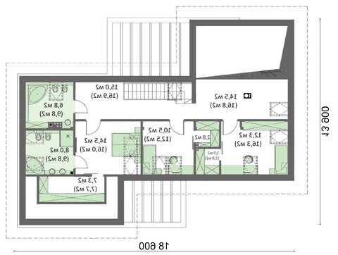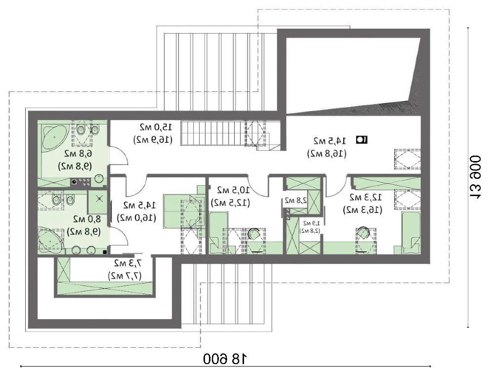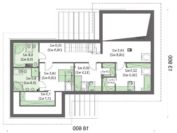 Второй этаж включает три спальни. Благодаря необычной планировке, личные комнаты включают обширные гардеробные помещения. Хозяйские апартаменты наиболее благоустроены. В их площадь включены собственный санузел, гардероб и полузакрытое пространство балкона.