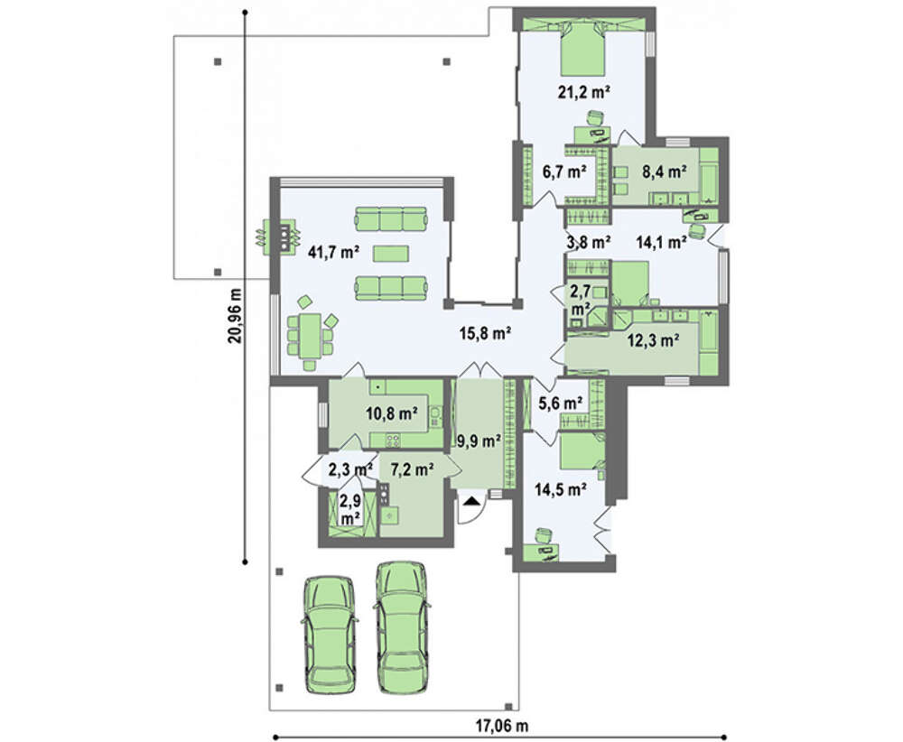 Проект современного 1 этажного дома площадью 190 кв.м 4M7088
