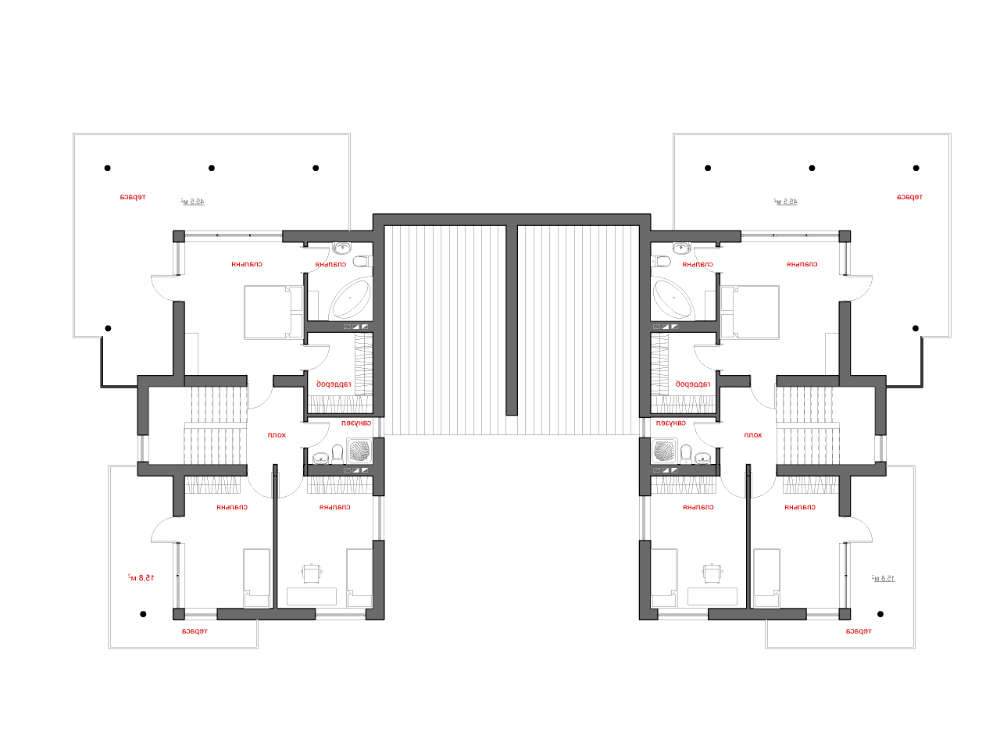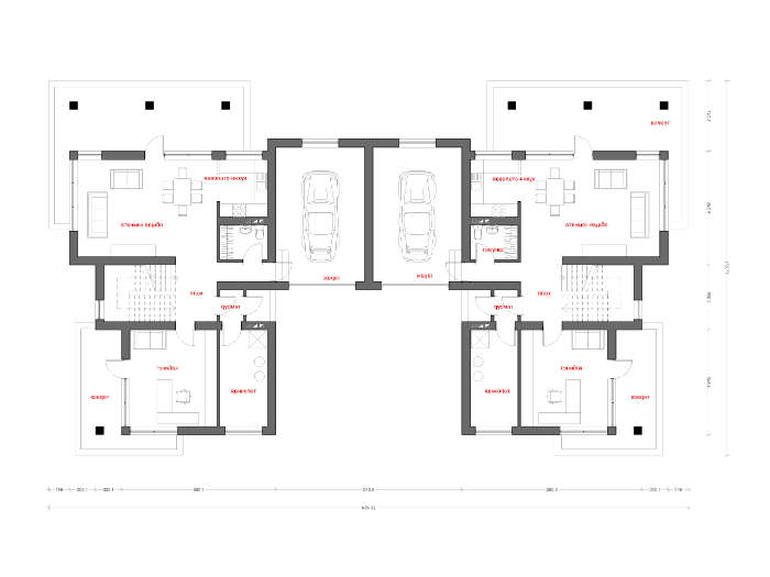 • 4M805 Проект современного коттеджа на две семьи с плоской крышей