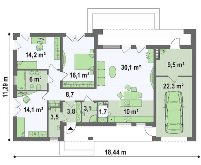 • 4M590a Проект современного дома по типу 4M590 с гаражом на одну машину
