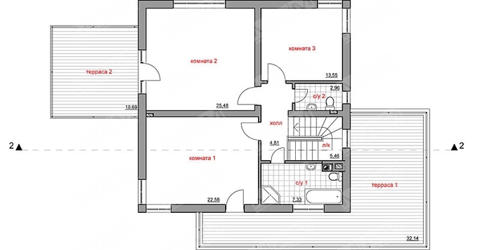 Проект содержит три раздела – Архитектурный, Конструктивный и Инженерный: водоснабжение, отопление, вентиляция, канализация, электроснабжение (приобретается за дополнительную плату) + Пояснительная записка.