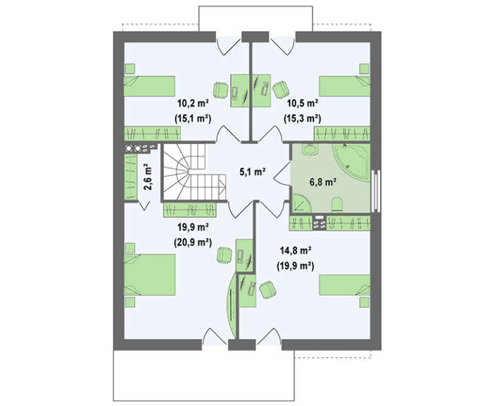 Проект современного дома с мансардой и удобным балконом