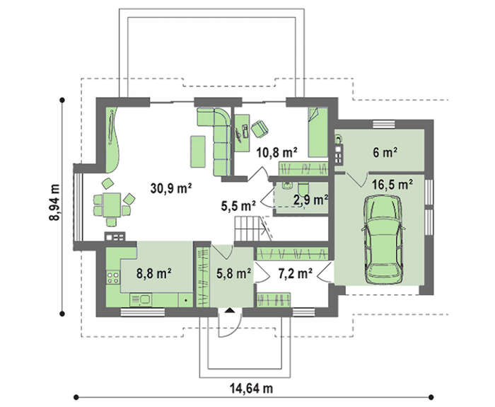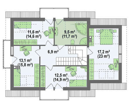 • 4M294 Проект современного дома с пятью спальнями и гаражом