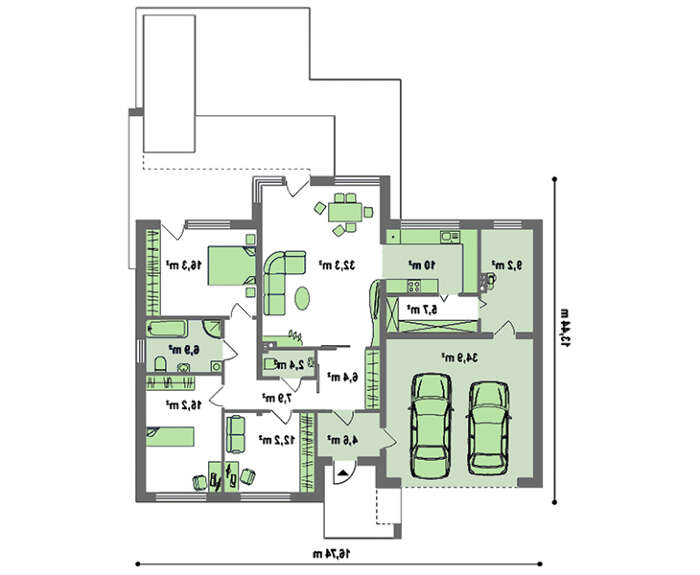 • 4M594 Проект современного дома с плоской крышей и гаражом для двух авто