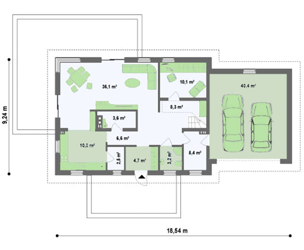 Выбрав для себя проект двухэтажного дома с баней на первом этаже, вы получаете современное жилье, рассчитанное на комфортное проживание большой семьи из 5-6 человек. Такой дом идеально впишется в узкий участок с въездом с восточной стороны.