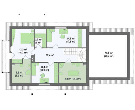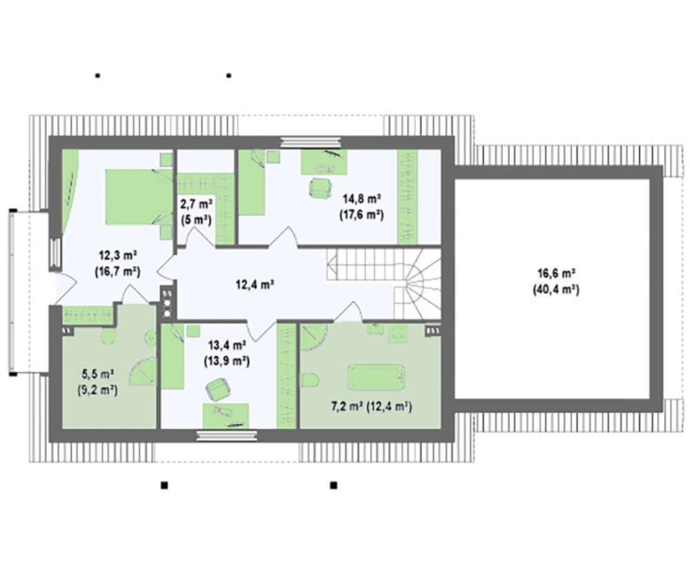 Есть еще одно неоспоримое достоинство дома. При желании, можно обустроить открытые террасы на втором этаже. Одна из них может располагаться на северной стороне над гостиной, вторая – над гаражом с южной стороны.