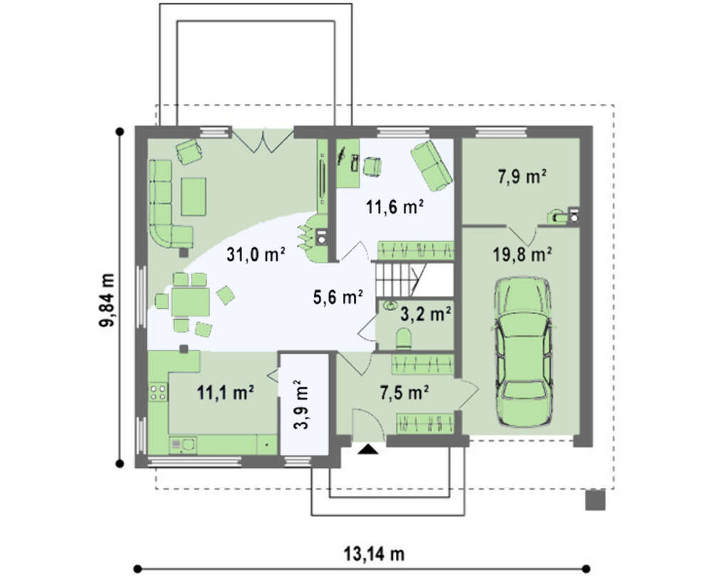Проект содержит три раздела – АрхитектурныйКонструктивный и Инженерный: водоснабжение, отопление, вентиляция, канализация, электроснабжение (приобретается за дополнительную плату) + Пояснительная записка.