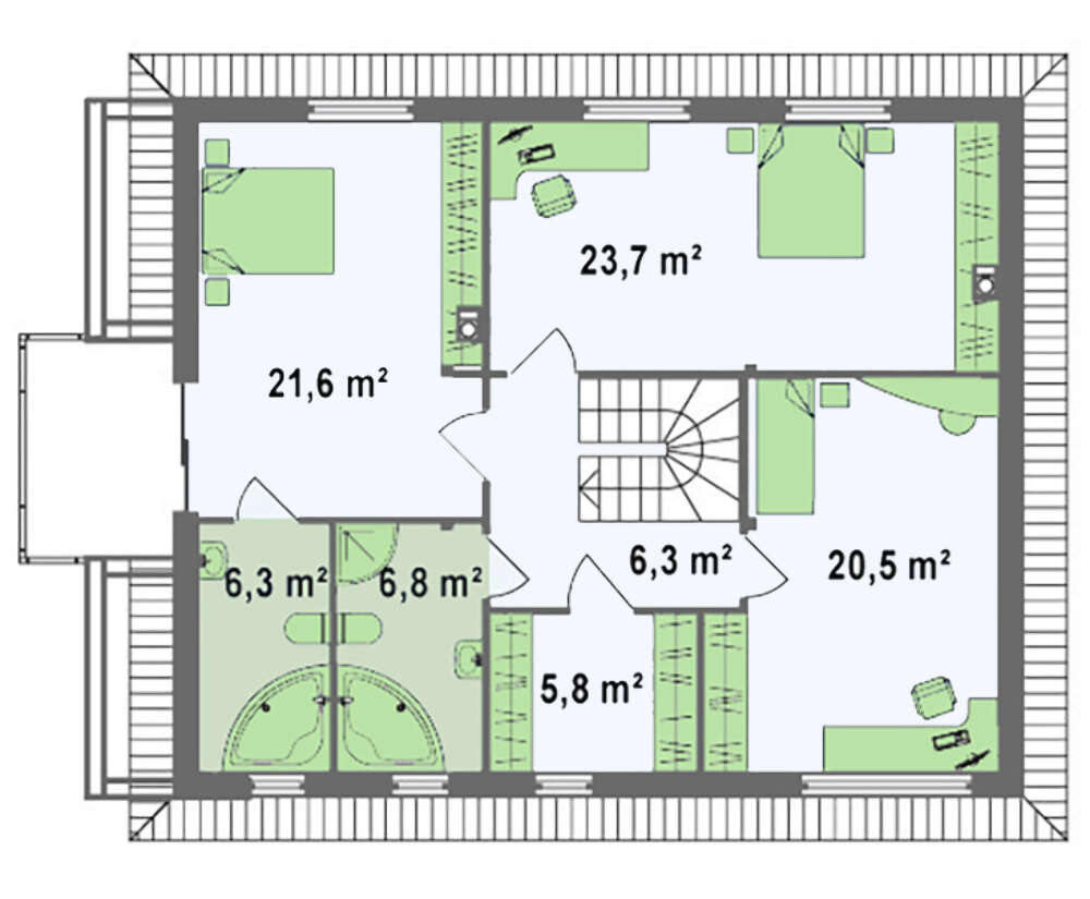 Проект современного двухэтажного коттеджа площадью 204 кв.м. 4M636