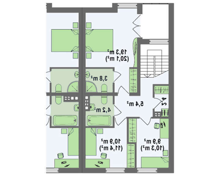 • 4M562 Проект современного двухэтажного коттеджа на две семьи с раздельными входами