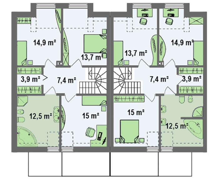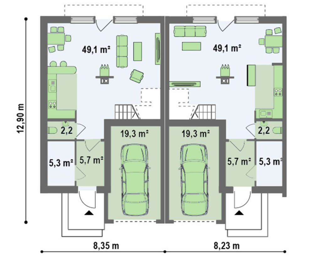 Проект современного энергосберегающего коттеджа формы таунхаус
