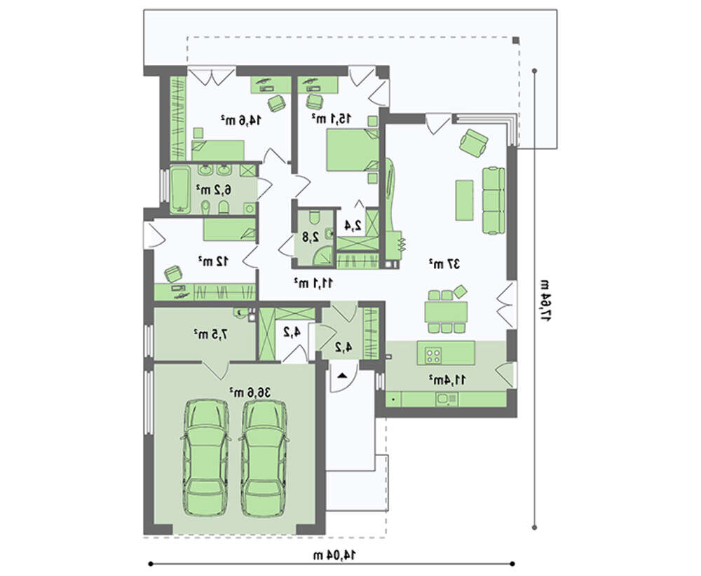 Проект содержит три раздела – АрхитектурныйКонструктивный и Инженерный: водоснабжение, отопление, вентиляция, канализация, электроснабжение (приобретается за дополнительную плату) + Пояснительная записка.