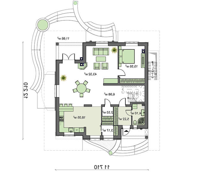 Великолепный двухэтажный дом выполнен в современных традициях европейского жилья, что придется по вкусу застройщикам, предпочитающим практичность и рационализм. Проект может быть использован как среди живописного загородного пейзажа, так и в урбанистическом ландшафте мегаполиса. Коттедж рассчитан на комфортное проживание семьи из 5-6 человек разных поколений.