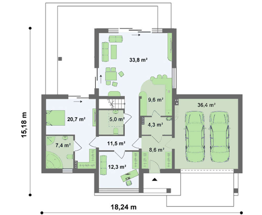 • 4M670 Проект современного коттеджа с двумя спальнями