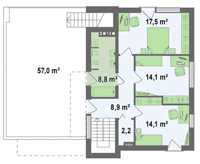 Проект современного коттеджа с террасой и гаражом для 2 авто 4M682
