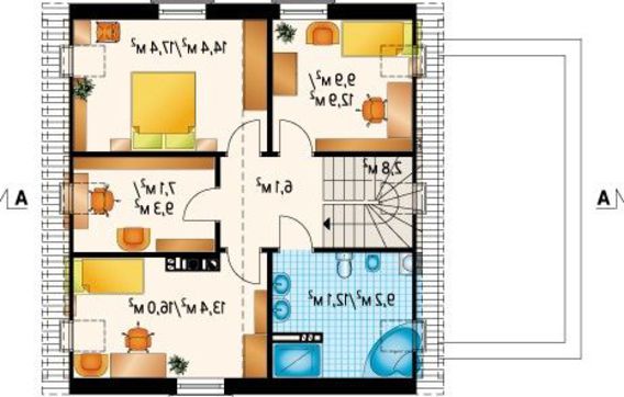 Второй этаж представлен 4 жилыми помещениями, три из которых отведены под спальни. Небольшая комната может быть меблирована под детскую или кабинет.