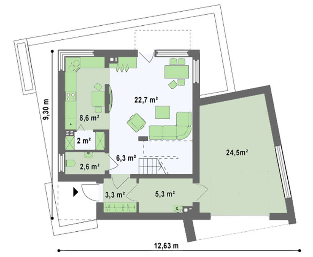 Проект современного небольшого коттеджа с гаражом 4M678G