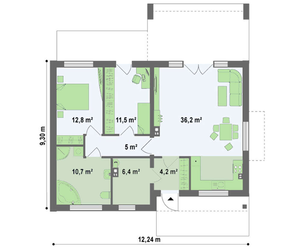 Проект современного одноэтажного дома с необычной террасой 4M282