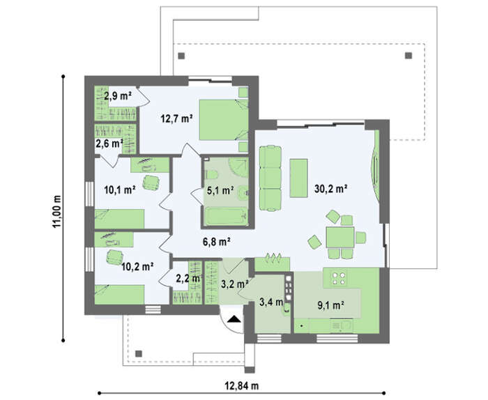 • 4M596a Проект современного одноэтажного коттеджа с плоской крышей