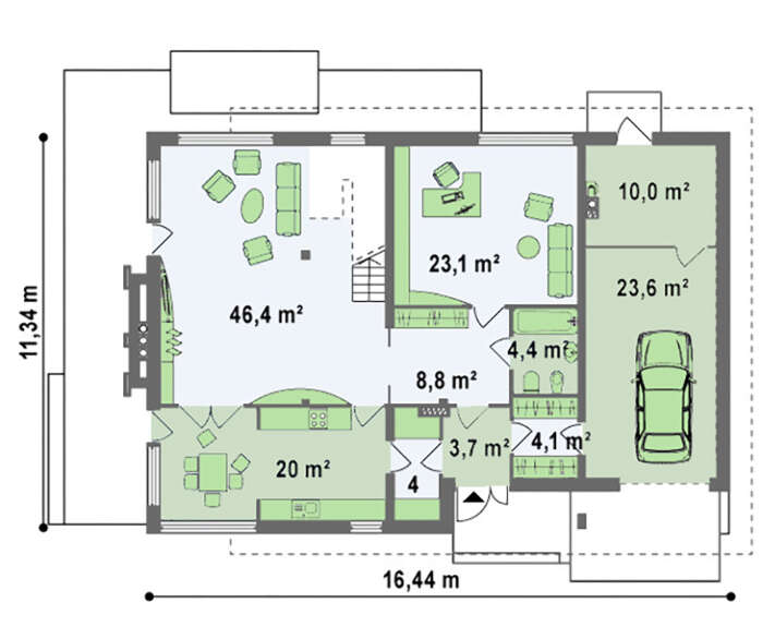 • 4M624 Проект современного стильного коттеджа с плоской крышей