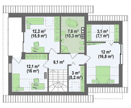 • 4M204 Проект современного стильного небольшого дома с мансардой, гаражом для 1 автомобиля
